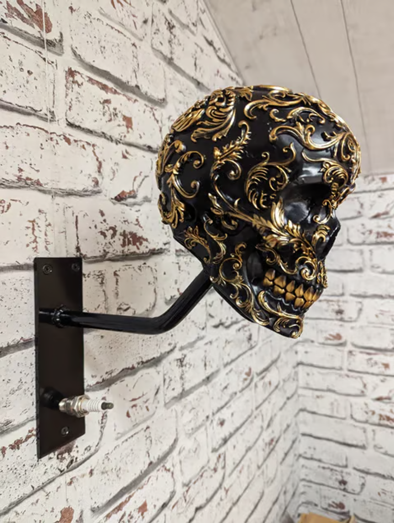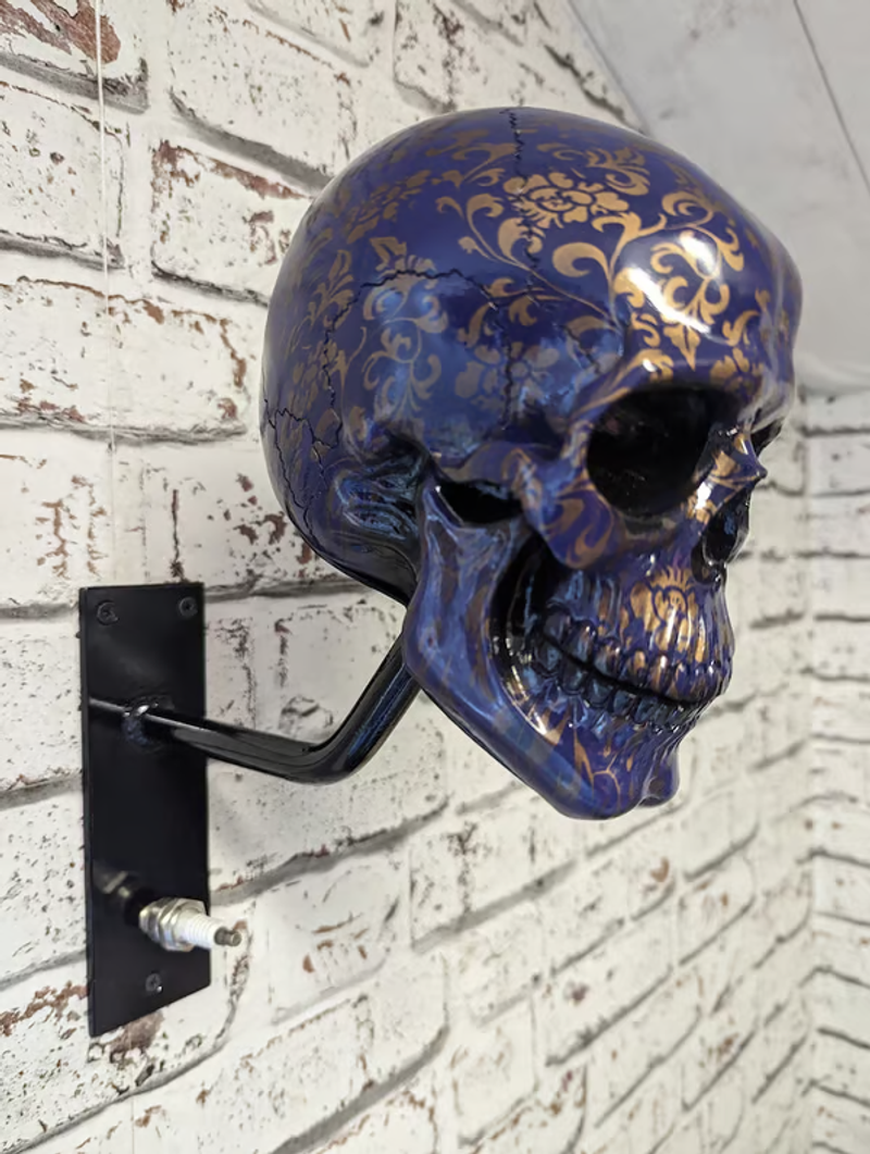 This is a unique 3D helmet display stand. The skull accessory is included but removable. Display your headgear in a unique way when not in use, whether for tactical, sporting, or as a collectible! A great addition to your home office, gaming setup, or even your garage.