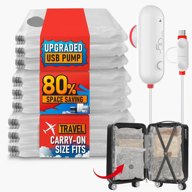 USB Powered Vacuum Pump: Experience effortless compression wherever you go with our USB vacuum pump. Connect it to your mobile power supply or laptop for on-the-go compression