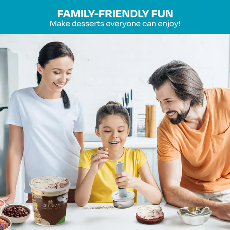 INSTANT ICE CREAM SANDWICHES: No Prep Needed! Create delicious ice cream sandwiches quickly with this ice cream sandwich maker. Scoop directly onto store-bought cookies for effortless, fun desserts anytime.