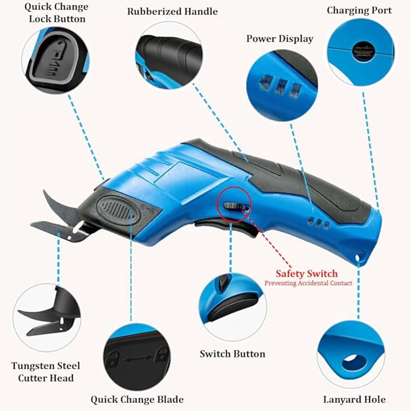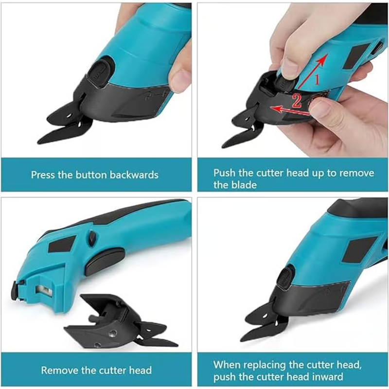 Comes with one alloy steel blade heads capable of cutting fabrics up to 8mm,leather 6mm, and aluminum sheets 1mm.