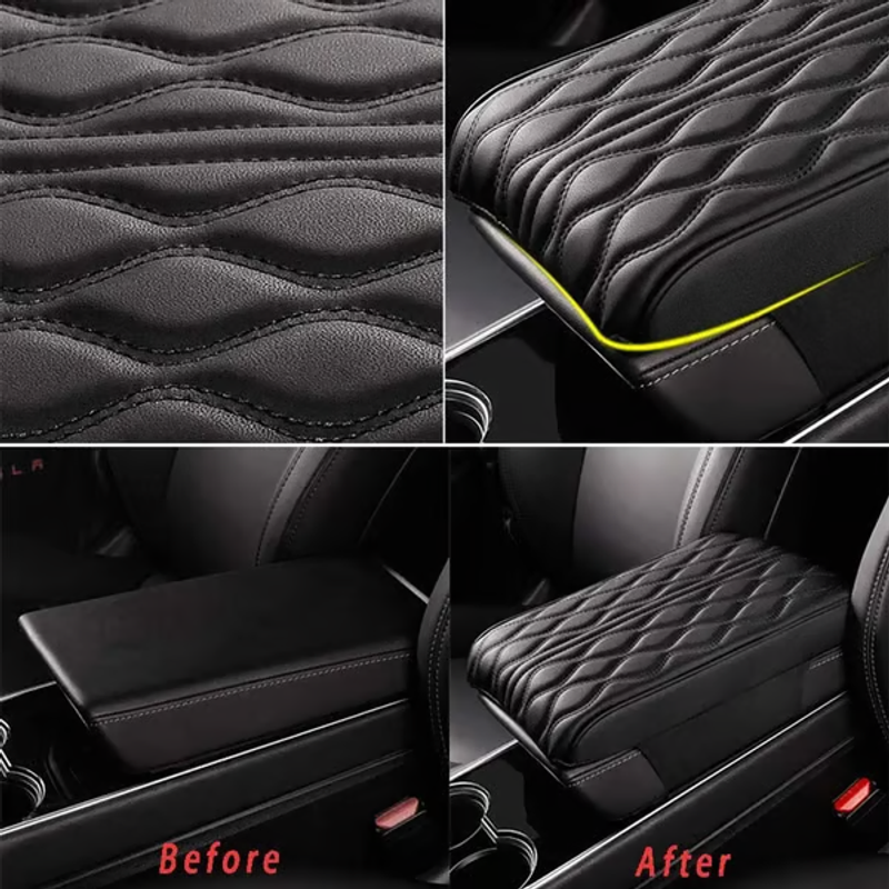 Use elastic bands to fix the armrest box cover on the center console without any tools.Its design fits comfortably and does not affect the use of the center console or the lifting of the armrest box cover