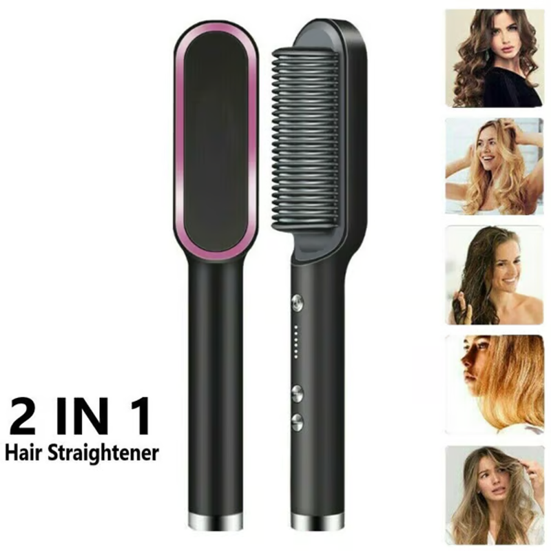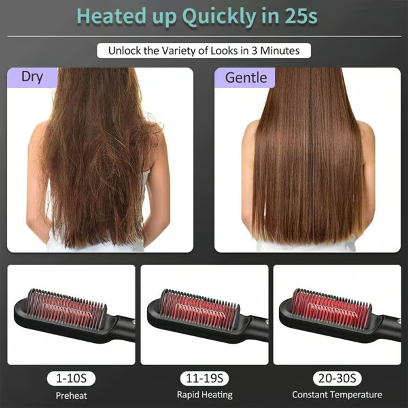 The negative ion straightener comb will turn your curly and frizzy hair into straight and smooth one in a wink! You can have that at-home blowout or the sleek hair of your dreams at any time of the day with this Hair Straightening Brush!You don't need to go to the barbershop.