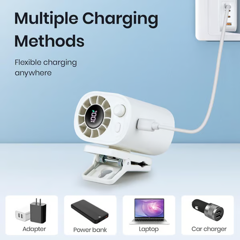 This high speed mini fan features a multifunctional clip that can be attached to various , including desks, belts, and umbrellas, allowing you to cooling wherever you go